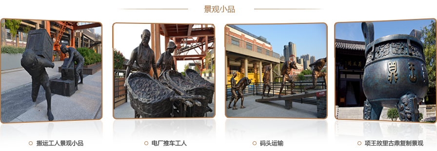 主題性雕塑是以歷史名人、風(fēng)土人情、市政規(guī)劃、豐功偉績等主題性人物、事件為藝術(shù)造型,用可塑材料或可雕、可刻的硬質(zhì)材料創(chuàng)造出一定空間的可視、可觸的藝術(shù)形象,借以反映人物、事件等方面的風(fēng)采和形象。景觀雕塑、景觀小品則是通過文化元素的提煉、材質(zhì)工藝的藝術(shù)化處理來美化環(huán)境、增加品位。