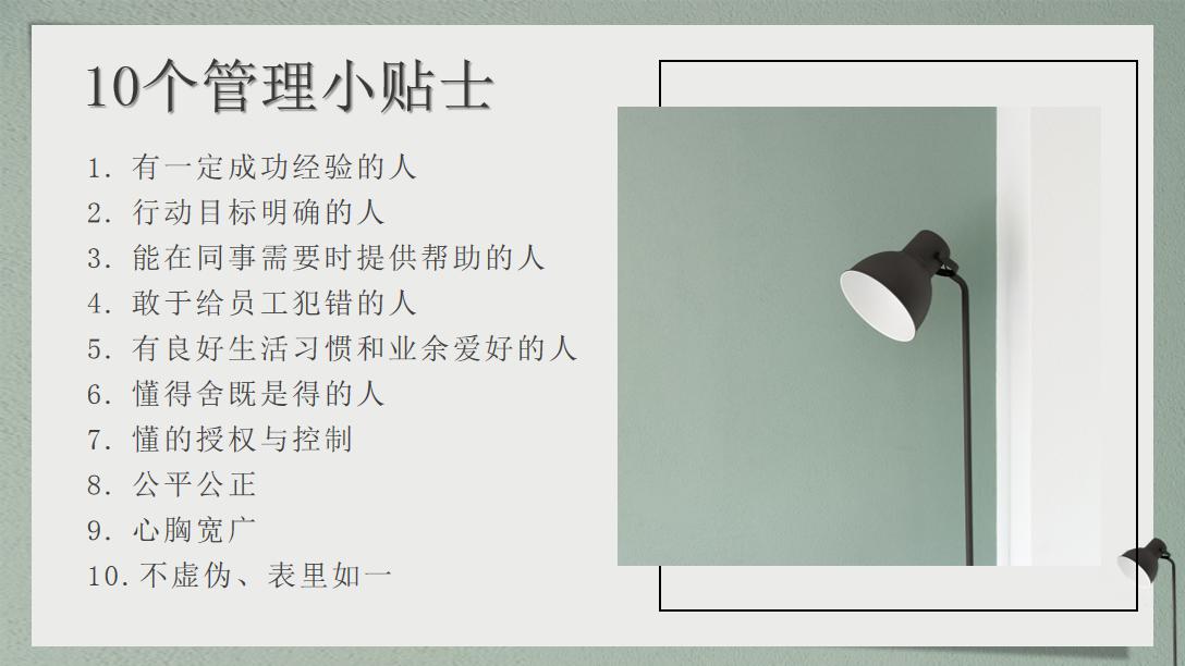 會(huì)議最后,楊總分享了《荷花定律》《混的好的人,都有同一個(gè)特質(zhì)》《實(shí)現(xiàn)內(nèi)部協(xié)同管理,信任成為重中之重》等一系列管理經(jīng)驗(yàn),并結(jié)合自身發(fā)展歷程分析了“10個(gè)管理小貼士”。