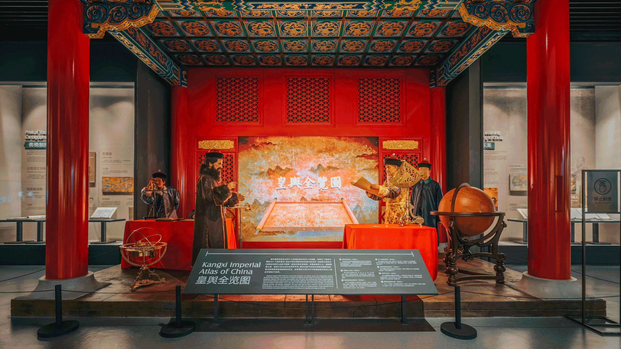 康熙皇帝在主持測制《皇輿全覽圖》,這是全國第一幅經緯度實測地圖。影片實地取景于橫店,由金螳螂文化的多媒體團隊全程策劃拍攝。