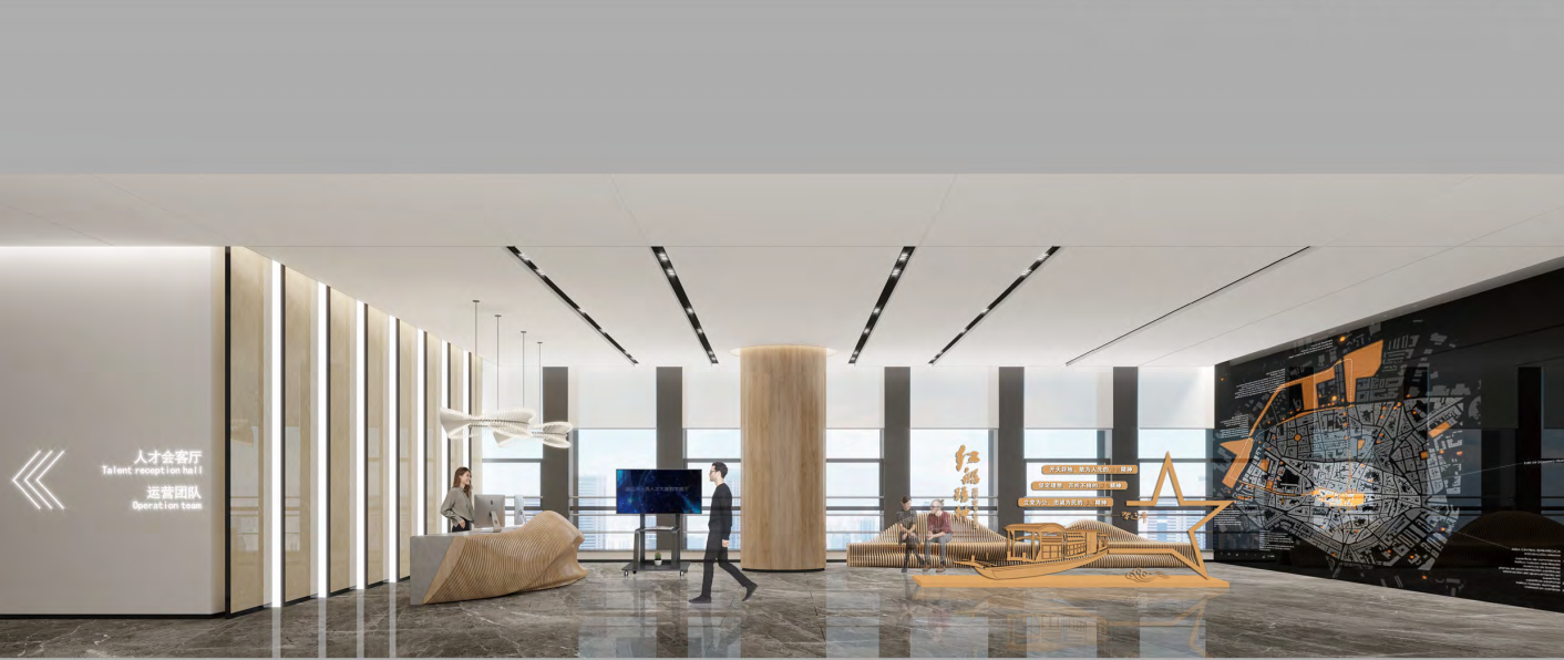 2019年3月5日召開的十三屆全國人大二次會議上,國務院總理李克強作政府工作報告指出,將長三角區(qū)域一體化發(fā)展上升為國家戰(zhàn)略,編制實施發(fā)展規(guī)劃綱要。浙江省省委人才工作領導小組辦公室與嘉興市委聯(lián)合出臺《嘉興市服務長三角人才一體化發(fā)展的意見(試行)》,聚焦“五個一體化”,推出以“人才”為核心的浙江長三角人才大廈項目。 由金螳螂文化擔任設計與施工的浙江長三角人才大廈項目,位于嘉興市南湖區(qū)國際金融廣場金融大廈B座的21、22和23層,每層約1700平方米。其中21層是長三角人才項目集聚區(qū);22層是長三角企業(yè)集聚區(qū)、高校聯(lián)合會、協(xié)會集聚區(qū);23層是長三角人才數(shù)字展示中心、長三角人才會客廳、人才驛站、公共服務信息平臺、嘉興長三角人才發(fā)展研究院、運營公司,展廳主要分為兩個區(qū)域,功能區(qū)和展示區(qū)。 展示+交流 綜合服務空間 科技感、現(xiàn)代感、生態(tài)感具足的人才大廈空間中,高科技互動、大數(shù)據(jù)智能、專業(yè)化服務相互交融。 功能區(qū)主要負責支撐“人才高質量發(fā)展的最后一公里服務”,展示區(qū)圍繞新時代長三角人才一體化發(fā)展主題,多維度展示長三角人才、產(chǎn)業(yè)、政策、城市等配套,打造服務長三角人才一體化展廳。 智慧人才展廳 展廳引用習近平總書記十九大報告中“以識才的慧眼、愛才的誠意、用才的膽識、容才的雅量、聚才的良方,把黨內(nèi)和黨外、國內(nèi)和國外各方面優(yōu)秀人才集聚到黨和人民的偉大奮斗中來。”一句話貫穿整個廳;以人才為核心,吸引人才、服務人才、留住人才等角度打造智慧人才展廳。 展廳將展示內(nèi)容與公共空間有機融合,將展線融入到整個辦公空間之內(nèi),以移動滑屏、透明屏、混合現(xiàn)實互動、隔空互動等多種展示方式,全方位詮釋長三角一體化發(fā)展戰(zhàn)略的政策與具體實施方略。 金螳螂文化匠心質造,將傾力把“浙江長三角人才大廈”打造成為長三角區(qū)域集人才集聚、項目孵化、集成服務、成果展示、信息集散、活動承辦、城市合作于一體的人才創(chuàng)新創(chuàng)業(yè)綜合性平臺。