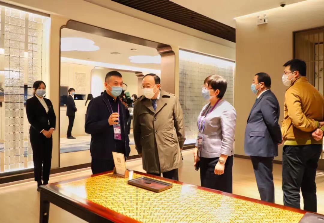 11月8日上午,商務部黨組成員、副部長,進口博覽會組委會辦公室主任王炳南視察上海國展中心蘇作館,為蘇作館創新展示“江南文化”之美,并向世界展現“中國文化”之自信表示高度贊賞。