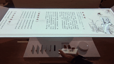 揮手移動山河畫卷,即可查看歷史長河里的雕版印刷傳播的詳細信息。