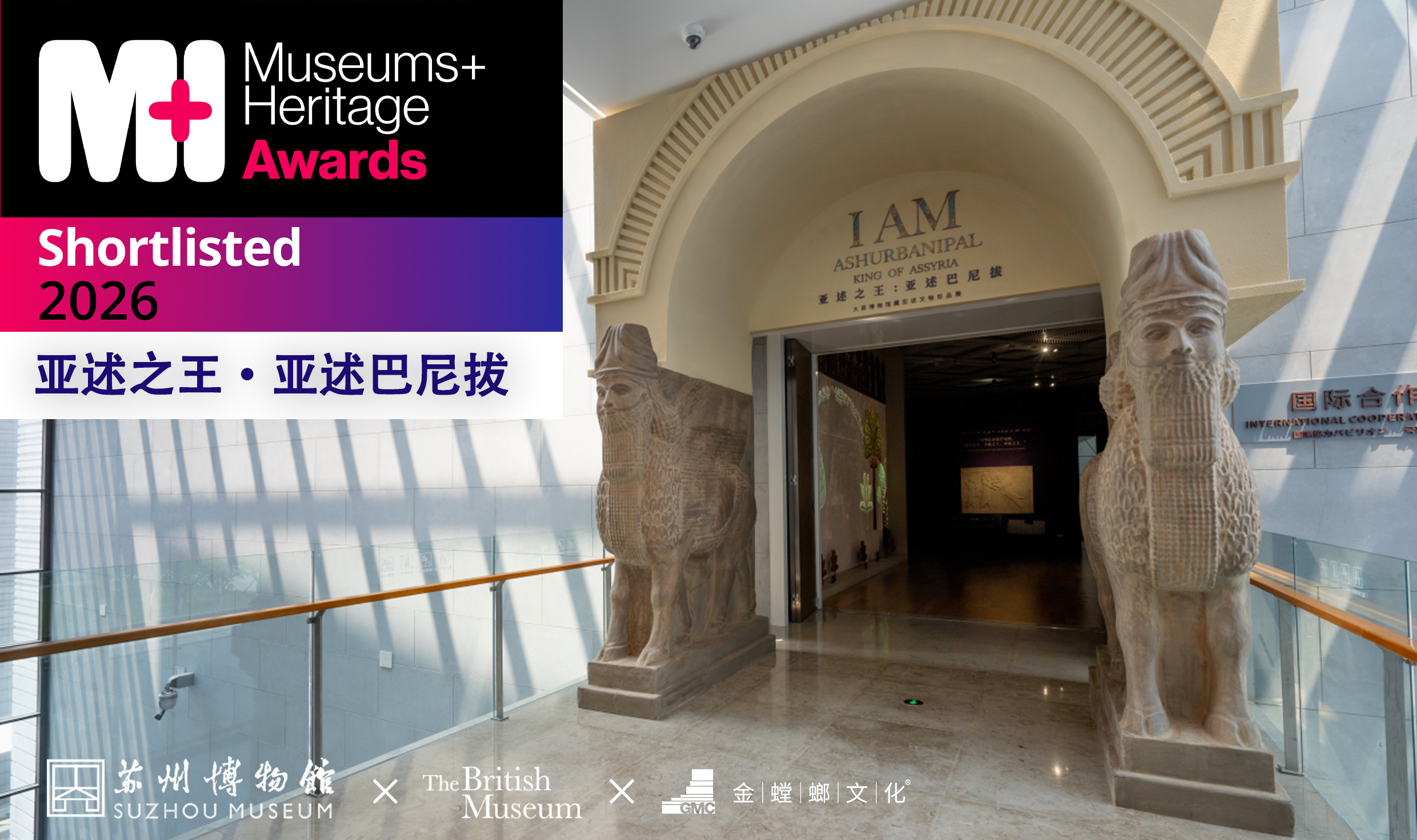 “吾即是亞述巴尼拔, 偉大之王,全能之王,亞述之主” 這位豪情滿懷的亞述之王,攜筆佩劍, 于2024年5月1日至2025年8月4日 在獅子山下的蘇州博物館西館, 與我們相遇。 繼榮獲“全國博物館十大陳列展覽 精品推介·國際及港澳臺合作獎”后, “亞述之王:亞述巴尼拔”特展 入圍“博物館文化遺產獎”, 成為該獎項唯一入選的國內項目。 (視頻號) 博物館文化遺產獎(英國) Museums + Heritage創立于1991年,多年來深耕行業,不斷拓展影響力版圖,持續強化行業話語權,致力于連接全球博物館、美術館及文化遺產旅游景點領域。 年度國際展覽(International Exhibition Of The Year)獎項類別適用于英國境外舉辦的常設展、特展或巡展,重點評估項目如何在既定預算內通過創新設計與敘事體驗,實施引人入勝、寓教于樂且發人深省的展覽項目,特別關注展覽對場館整體及觀眾的積極影響。 獎項官網: 作為蘇州博物館“世界文明史”系列的第三期,展覽“亞述之王:亞述巴尼拔”通過“國王亞述巴尼拔”“尼尼微——一座無與倫比的城市”“亞述巴尼拔的御花園”“學者型國王”“亞述巴尼拔的帝國”“沖突和瓦解”“亞述的再發現”“亞述巴尼拔和亞述藝術的力量”8個單元,用149件大英博物館珍藏亞述文物,講述了一首激蕩在美索不達米亞平原的王者史詩。 本次展覽整體由蘇州博物館統籌指導,在蘇州博物館陳列展覽部亞述特展團隊全程深度協作下完成。 此次展覽以“亞述巴尼拔”為主線,全方位、多層次地呈現這個曾被歷史遺忘的國度,也從學術史角度展示了亞述考古與亞述學研究歷程,以及亞述遺址保護等當代學術面向,在針對公眾科普的同時,也為業界及專業觀眾提供參考。 在蘇州博物館館方指導下,與蘇州博物館陳列展覽部亞述特展設計團隊的密切合作下,金螳螂文化項目團隊以展陳空間為畫布,共同呈現這場跨越時空的文明對話。 館方在策展中創新性地打破傳統國際交流展政治、軍事、文化、生活的散點敘事結構,以亞述巴尼拔這位亞述帝國全盛時期的君主為主軸,串聯起八個單元的展陳內容,讓人物成為展覽故事的引路人。 在空間營造上,蘇州博物館館方將展覽本身視為一件精雕細琢的空間展品,細致梳理文物與文獻,以亞述人鐘愛的提爾紫色為主調,還原宮殿、御花園、拉瑪蘇石雕等亞述奇觀,營造沉浸式的歷史現場。 金螳螂文化項目團隊則在設計中延續蘇博美學的克制與雅致,將石雕、建筑、圖案裝飾、花園等亞述元素,以創新的形式在展廳中重現。 數字化設計讓浮雕“活起來”,大量的時間軸和地圖提供時空錨點,創造性地以人物為主線策劃內容,多感官沉浸式的展廳設計……共同呈現出生動、深刻的文明史詩畫卷。 當文物穿越時光,文明便不再沉默。作為此次展覽的展陳實施方,我們始終相信,最好的陳列不是簡單的復現,而是讓歷史的鋒芒與溫度觸手可及。 從楔形文字的光影流轉到“亞述之王”氣度的空間敘事,我們試圖在蘇博西館展廳間,構建一場橫跨兩千多年的文明對話。200多萬觀眾走進這片兩河流域的文明現場,了解古代杰出君王的雄心,感知一個時代的重量。 金螳螂文化將繼續講好文化故事,打造“可看、看感、可體驗”的藝術化展陳空間,讓文明記憶在當代語境中鮮活再現。